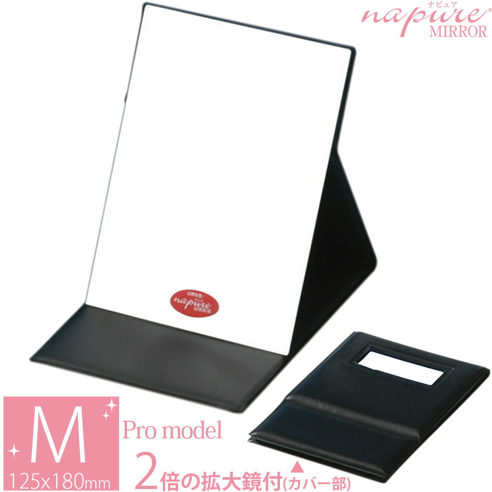 スタンドミラー M 鏡 拡大鏡 2倍付き ナピュアミラー メイク プロモデル HP-42 折立ミラー 角型 特許 毛穴 シミ シワ プロ使用 折りたたみ 携帯 老眼 堀内鏡工業