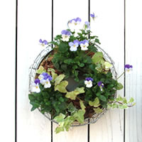 上記のビオラのリースではビオラ3株、アイビー1株を3つに分けて植えています。